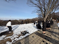 | 1月28日(水)修学旅行3日目。スキー研修2日目は昨夜から降り続く雪の中でスタートしました。それぞれ昨日よりもスキーが上達し、みんな元気に新雪の上を滑りました。休憩時間にも、雪だるまやカマクラ作り、雪合戦などを楽しみました。思い切り白銀の世界を満喫して、2日間のスキー研修を無事に終えました! |