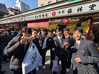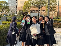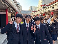 | 1月30日(金)修学旅行5日目。最終日は浅草とお台場での観光です。浅草ではお土産に雷おこしや人形焼を買う姿のほか、おみくじの結果を友達と見せあったりするなど、短い時間でしたが楽しい思い出を作る姿が見られました。午後からのお台場では、ダイバーシティなどで買い物を楽しむ姿が見られました。疲れの見られる生徒もいますが、みんなが最終日を楽しく過ごせました。 |