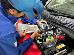 | 実習でスキャンツールを使用 | スキャンデータを基に実車を点検 |