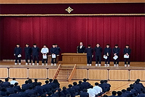 前期生徒会役員の認証式も行われました。 旧生徒会執行部のみなさん、お疲れ様でした。 新たに認証された生徒会のみなさん、より良い学校作りのために頑張ってください。 |