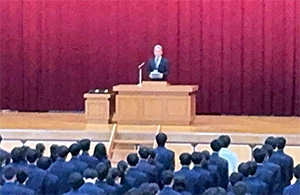 1年生を対象に非行防止教室、2,3年生を対象に着こなしセミナーを実施しました。 「非行防止教室」では、生徒の規範意識の醸成を図るとともに、被害に合わないための知識や判断力について学びました。 「着こなしセミナー」では制服の着こなしの知識やマナーを知ることで、TPOを理解した着こなしを、自ら判断できる力について学びました。 (画像は「非行防止教室」) |