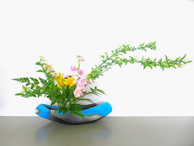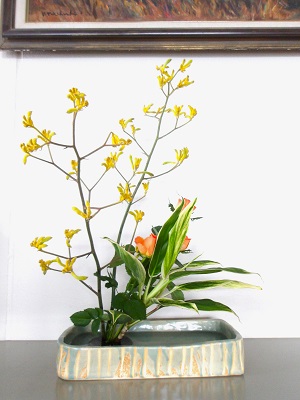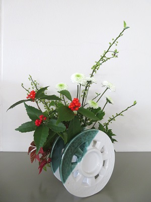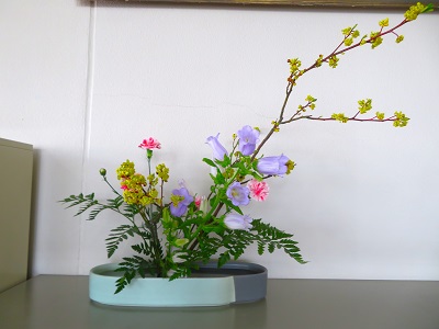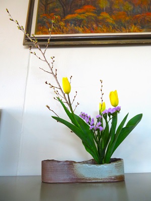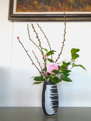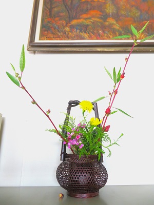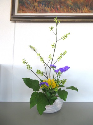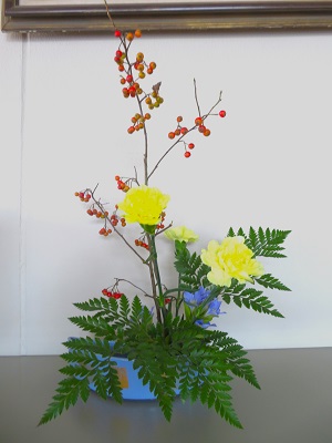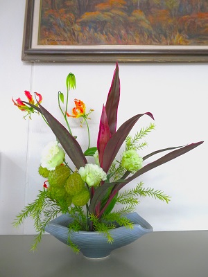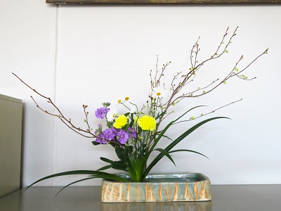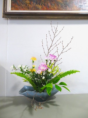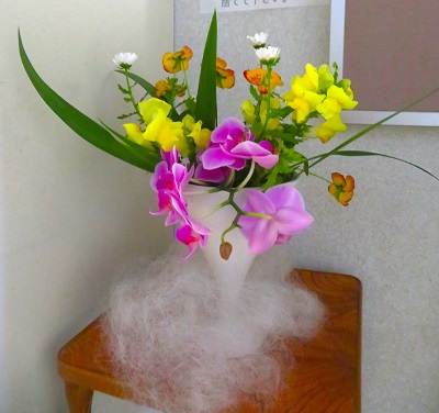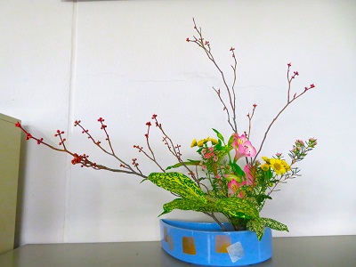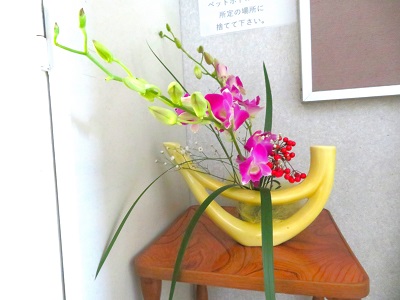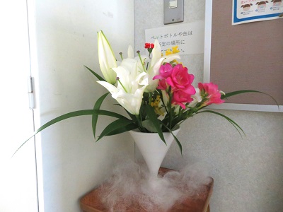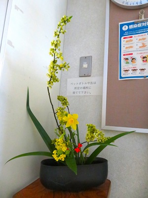 *本校卒業生の保護者の方が所属している華道山月さんのご厚意により生けてくださっています。