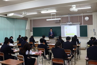 講座では土佐市青年団の様々な取り組みや土佐市の魅力について、分かりやすく丁寧に教えていただきました。また、本校1年生の生徒がボランティアとして参加した地域食堂でのエピソードや今後の予定の連絡もあり、本校生徒と地域をつなぎ、活躍の場を広げて下さる活動を続けて下さるとのことでした。