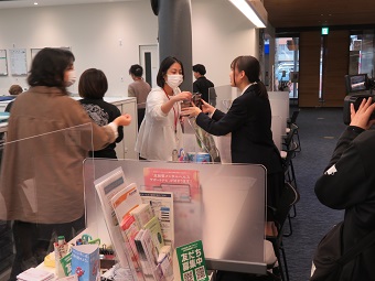 チャイムが鳴ると同時に、生徒たちはワクワクした様子で階段を駆け下り、生徒玄関にはあっという間に行列ができました。先生方も楽しみにしており、校長先生が見守る中、生徒たちは思い思いにお気に入りのパンを手に取っていました。