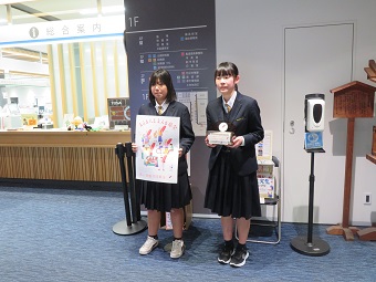 終業式後に6月に行われた四国高等学校レスリング選手権大会で入賞した岡林さんと藤原さんの伝達表彰式が行われました。