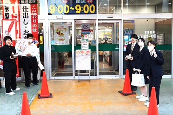 ドラゴン広場で世代交流食堂「なぶらっこ」が土佐市青年団主催で行われ、本校の1年生4名がボランティアで参加しました。現存の「子ども食堂」にプラスして地域で働く外国人の方や若者、お年寄りなどにも利用してもらえるよう「世代交流食堂」と名前を変えて活動しています。