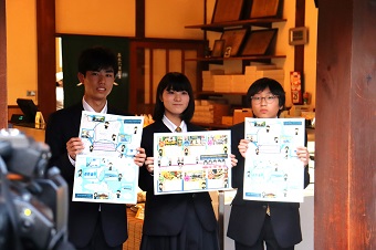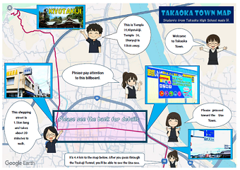 本校1年生のすずかけ講座で土佐市の観光について探究する「観光班」が、高岡商店街活性化と外国人お遍路さんの集客などを狙った英字マップを制作しています。土佐市商工会様、土佐信用組合様にご意見、ご協力をいただき、完成まであとわずか。英文が一般的かどうか本校ALTのタイレル先生に最終チェックをお願いしています。