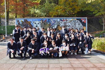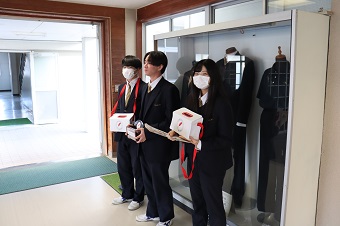 最後に選手団を代表し弓道部3年の松谷侑飛団長が「今までお世話になってきた皆さんへの感謝の気持ちも込めて、持てる力のすべてを出しきり全力で戦ってきます。そして、県下に高岡高校の名を知らしめてきます。本日は誠にありがとうございました」と謝辞を述べました。
