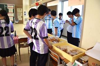 初日の販売は大盛況!パンを頬張る生徒たちの笑顔にあふれる昼休みとなりました。これからも毎週木曜日のパン販売を楽しみにしております。