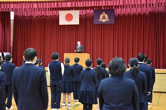 校長先生からは各学年生徒へのメッセージや本校の校訓である「熱意・創意・誠意」について「自分から物事に積極的にかかわる。うまくいかなくても、工夫を重ねて取り組んでいく。そして、真心をもって人とともに取り組む。このような生活を送っていると、卒業をする時には、想像もしなかった自分にであえるはずです」とわかりやすくアドバイスをいただきました。