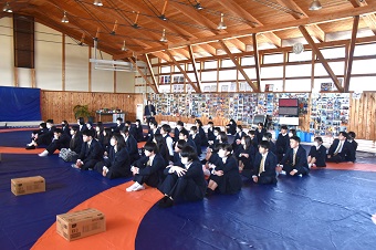 四国大会壮行式では、教頭先生から激励の言葉をいただいた後、選手団を代表してレスリング部主将吉永倖也選手が「名門校としての誇りを胸に精一杯戦ってきます。本日は誠にありがとうございました」と謝辞を述べました。