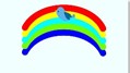 ○5色の虹ができた後青い鳥が画面を飛び回り、最後は隠れる