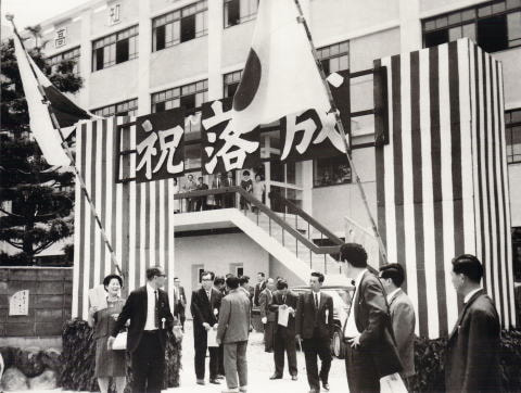 昭和32年(1957)正門付近。この年、初の5000円紙幣(聖徳太子肖像)発行。