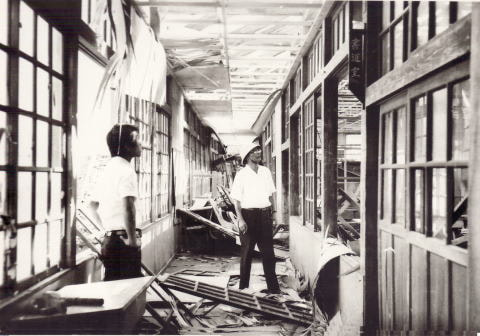 山田高校でも書道教室や柔道場のある南舎別館は大破し(写真)、その後撤去された。