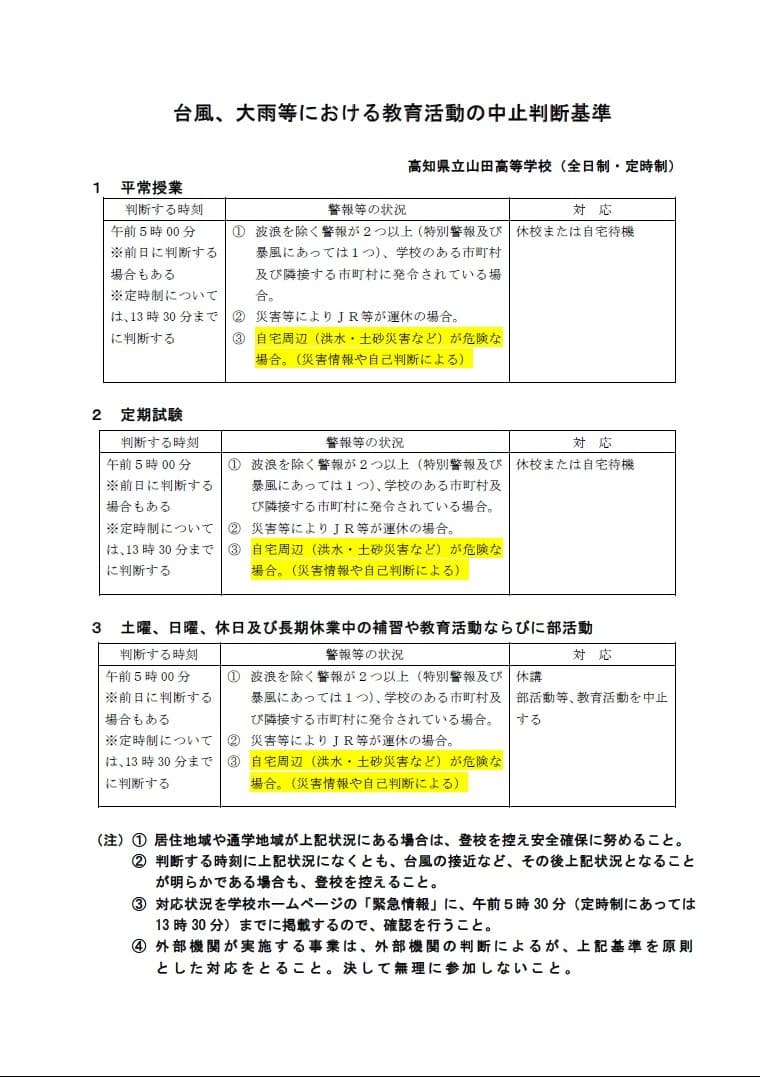 ・山田高校における感染防止対策について(令和2年4月27日付)こちら