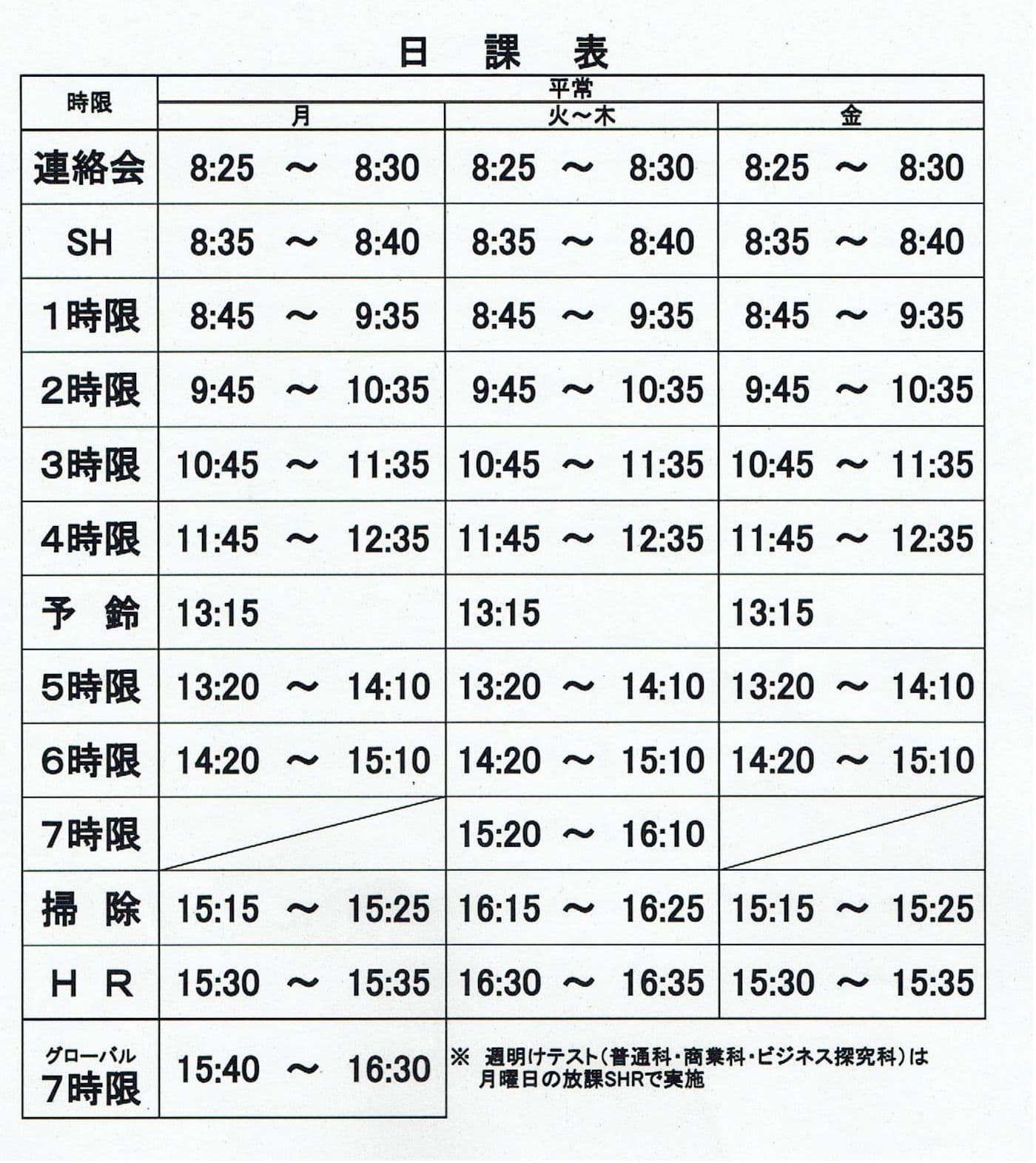 ・学校再開時の時間割(5/7(木)・5/8(金))について(令和2年4月24日付)こちら