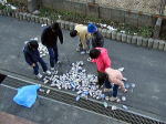 ボランティア委員会を中心に全校でプルタブ・アルミ缶を集めています。800kg集めると、車椅子をもらえるので、車椅子を必要としている人にプレゼントしようと一生懸命地域の人にも呼びかけています。 今までに4台の車イスを、カルスト会にプレゼントすることができました。 |