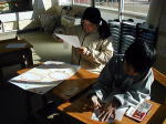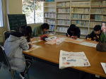 毎日たくさんの人が本を借りにくるので図書委員は大忙し。みんなが気持ちよく本を借りることができるよう、また、本をたくさん読むよう図書室の環境を整えています。 |
